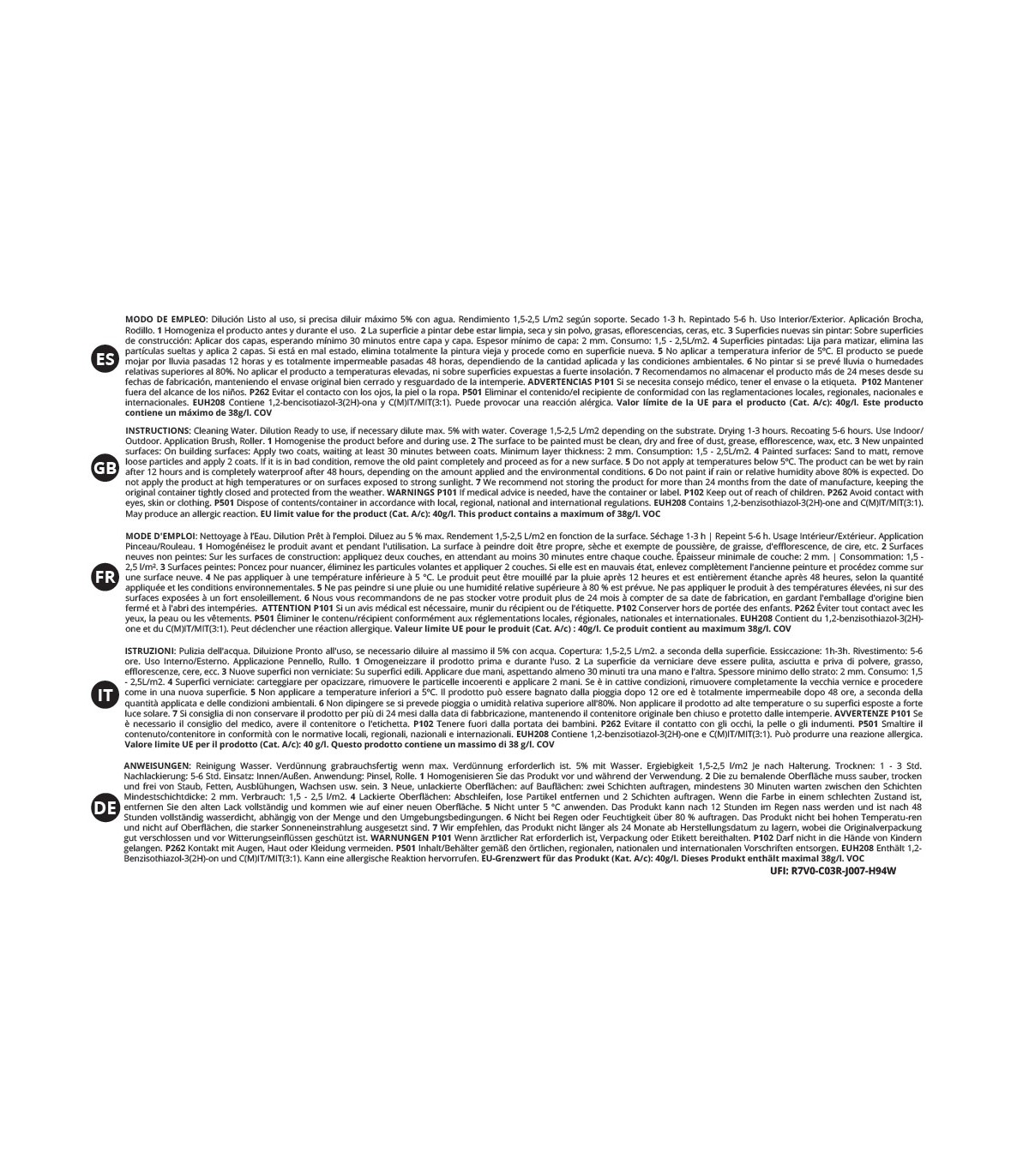 - Rendimiento 1,5-2,5 L/m2 según soporte