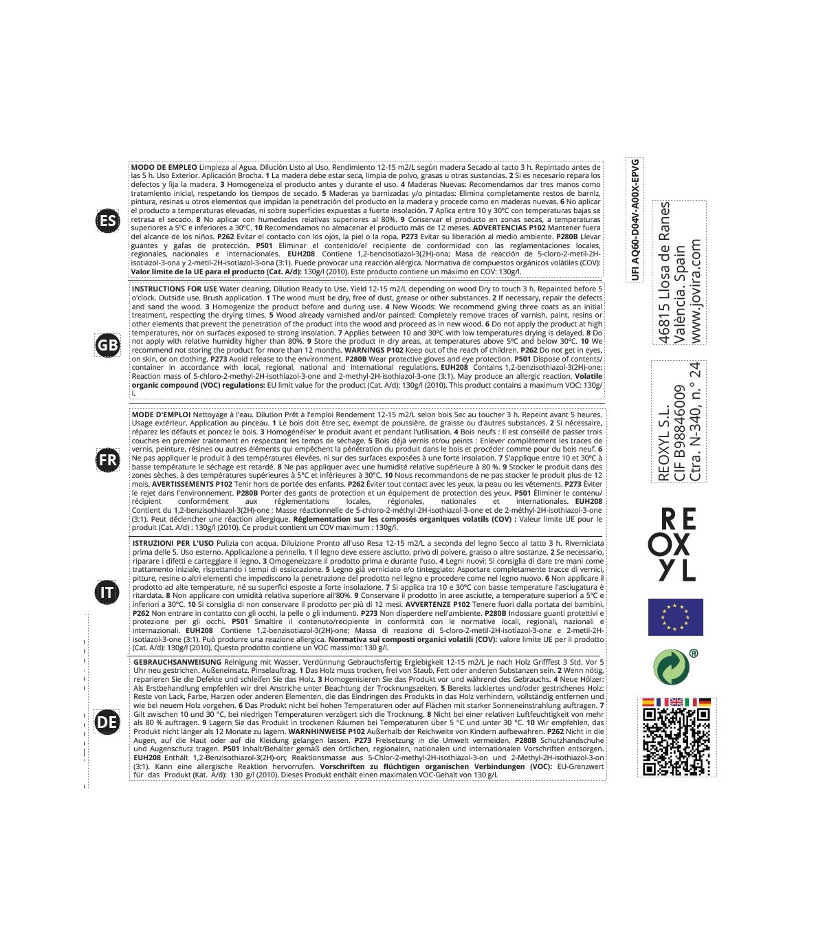 Emulsión de aceites sin disolventes que penetra profundamente en la madera y forma una red repelente al agua y resistente a la intemperie. No forma película. Especial para maderas instaladas al aire libre sin contacto con el suelo como vallas de jardín y cerramientos de madera. Apta para maderas impregnadas o tratadas.