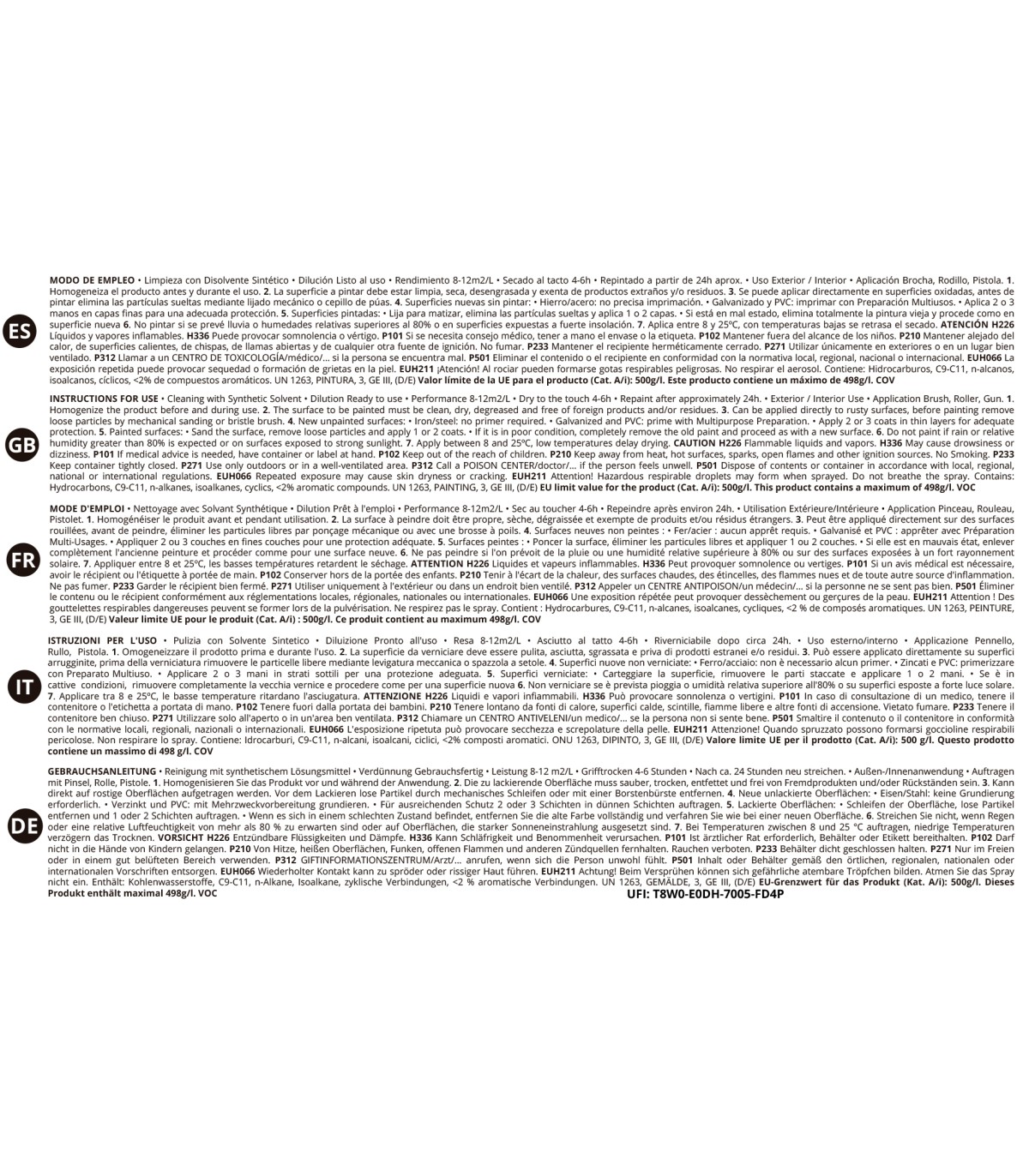 - Secado al tacto 4-6h | Repintado a partir de 24h aprox.