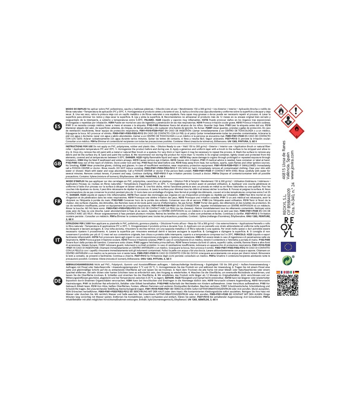 Quitapinturas de acción muy rápida y eficaz. Super concentrado con gran poder decapante. Elimina en pocos minutos y sin esfuerzo las capas de pintura vieja sobre superficies de metal. Fácil y cómoda aplicación. Está indicado para el decapado de esmaltes, epoxi, imprimaciones, etc. No aplicar sobre PVC poliestireno, caucho y baldosas plásticas. Exento de cloruro de metileno.