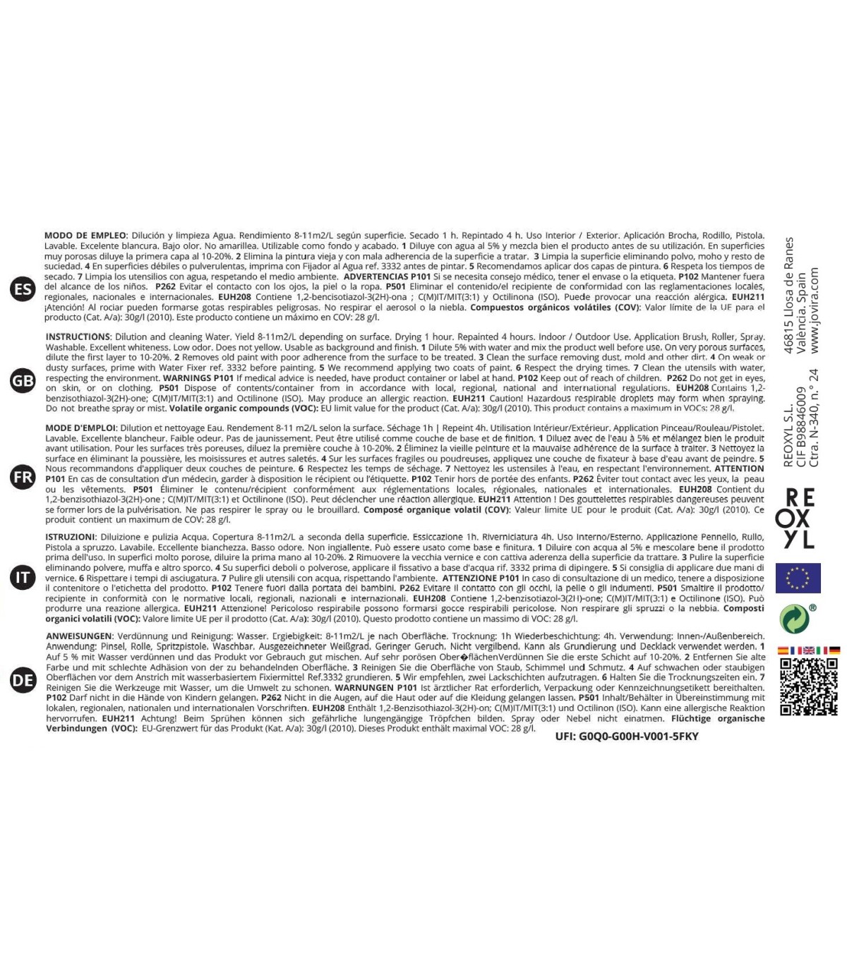 - Rendimiento 8-11m2/L según superficie
