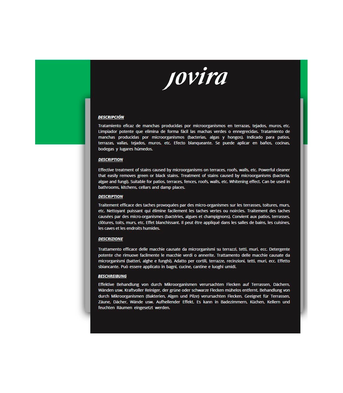 Tratamiento eficaz de manchas producidas por microorganismos en terrazas, tejados, muros, etc. Limpiador potente que elimina de forma fácil las machas verdes o ennegrecidas. Tratamiento de manchas producidas por microorganismos (bacterias, algas y hongos). Indicado para patios, terrazas, vallas, tejados, muros, etc. Efecto blanqueante. Se puede aplicar en baños, cocinas, bodegas y lugares húmedos.