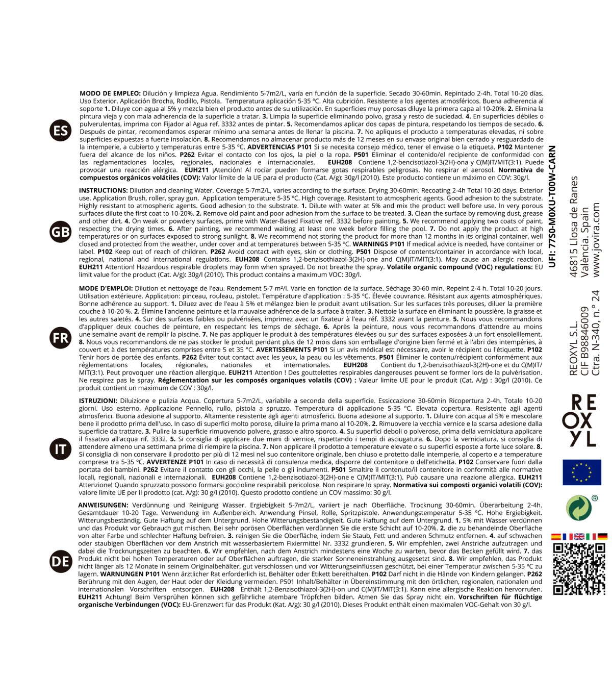 - Secado 30-60min | Repintado 2-4h | Total 10-20 días